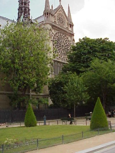 Notre Dame, as in Hunchback of ... I got off the RER (train) from the airport and there it was.