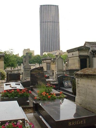 That is a skyscraper, the Montparnasse Tower, in the background. The Montparnasse Cemetery is in the foreground. The top of the building is from where I took the previous picture above.