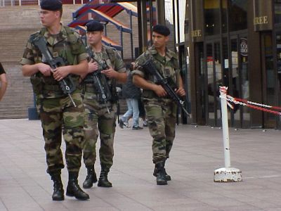I had a lot of respect for the French police. Or was it fear? When I asked permission to take their photo they told me no so this shot was risky. The French take their security very seriously. The street cops with their automatic weapons were buffed and mean looking.