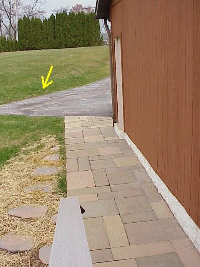 I replaced the cracked concrete slab outside the garage entrance door with these Bradstone pavers, and added flagstone steps that go down my hill to the first floor. Backbreaking work that kept a softy like me sore for a week. Don't go by the brown crap exterior color. I am gradually switching over the color of the house to slate gray, to match the pavers and my deck.