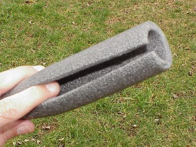 Bought six feet of pipe insulation (ID 1 7/8 inch) at Home Depot for $1.18, and carefully cut a straight line down the length.