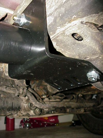 This may seem obvious, but do not pinch or trap the brake line under the silver metal straps, shown at the top of the above pic. There was an extra "offset rear mount bar" provided by Westin in case the mounting strap had to go around the brake line, instead of under it as shown.