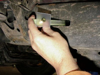 Feel around inside the hole first before inserting the assembly as there were some metal parts in the way inside the frame rail. The instructions said to point the "long end facing the rear of the truck." This piece was a tight fit.