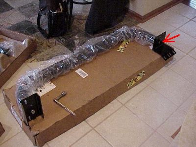 Driver side step bar with mounting brackets attached to both ends. The front mounting bracket next to the arrow required a 5/16" Allen wrench.
