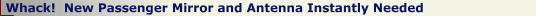 An unusually early and heavy October 2011 snow caused a tree branch to hang out over the edge of the road and I did not see it until it was too late. From the sound, I thought for sure I broke my windshield, but it did not crack. Once I got over the initial shock, I noticed my antenna and passenger rear view mirror were gone. I turned around and went back to salvage the pieces but nothing was useable.