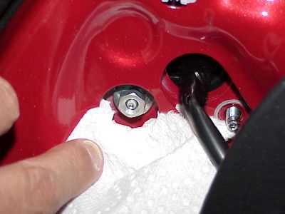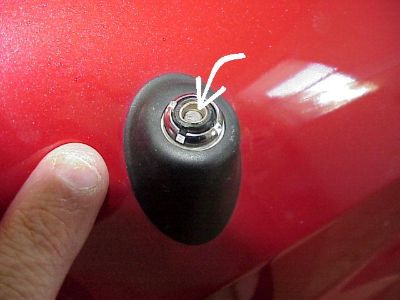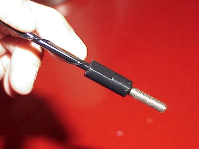First, I carefully placed a couple of drops of PB Blaster into the antenna hole to loosen the broken off stud.