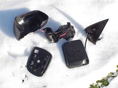 These were the pieces left after my mirror hit a low hanging branch. I never found the glass or the antenna.
