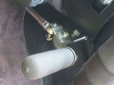 I tend to believe that this was probably the only Z in the country with adaptive equipment. I brought my tools with me because the adaptive equipment was valuable to the owner. At one point, I thought I was beaten and would not be able to remove the equipment in time. I told my GF, "If removing this nut does not do the trick then we're done, we''ll finish the job back home." I guessed right on the main nut and then it was like untangling an Erector Set. Did not help that I forgot my glasses and everything was a blur at such close quarters, laying face up on the driver side floor. Basically, the pieces were anchored by a giant strap that went completely around the steering column.