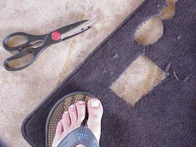 I cut a piece from the floor mat to make my "patch." The piece was about three times bigger than the hole.