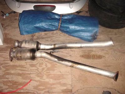 My older 2.5" aftermarket midpipes with larger high flow cats that would reportedly pass an emissions sniffer test.