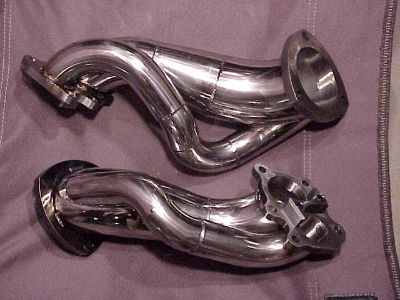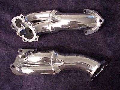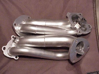 Here is a pic of 1st generation, four-bolt single tube DP's. I am not sure these DP's are even sold on the market anymore. The benefits over the stock precats are obvious. The right angle bends were smoothed out and the catalytic material inside is gone.