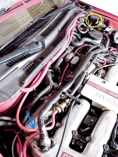 The vacuum line at the green arrow above leads to the passenger side recirculation valve, at the front of the car.