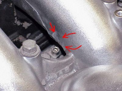 Here is a pic showing the slight amount of plenum that had to be Dremel'd over injector #3 on an earlier job, much less than for injector #1.