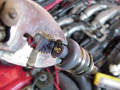 This is how I grabbed the injector for both removal AND insertion. I padded the pliers with a rag when pushing the new injector back in.