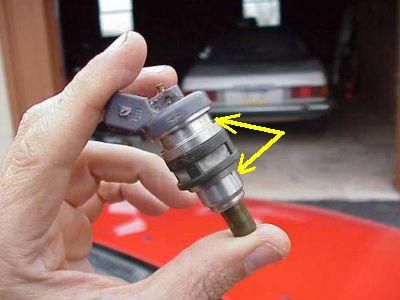 The arrows show where the O-rings go. I coated the O-rings with Vaseline and squirted the injector socket in the lower plenum with WD-40 before insertion.