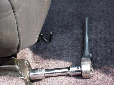 Tilt or carefully lift the seat just a little bit off the floorpan to undo the electrical connector under the seat. Even the passenger seat has an electrical connector for the seat belt alarm. I leave my passsenger side unplugged since I can tell in one second by looking at my passenger if he or she is buckled up. Plus, this makes taking the seat in and out easier in the future.