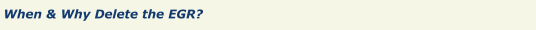 EGR stands for Exhaust Gas Return. The EGR is a federally mandated system designed to control tailpipe exhaust emissions. The EGR accomplishes this along with the main catalytic converters, and by Electronic Control Unit (ECU) adjustments to the engine. Now would be a good time to review this site's Disclaimer.