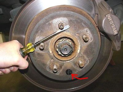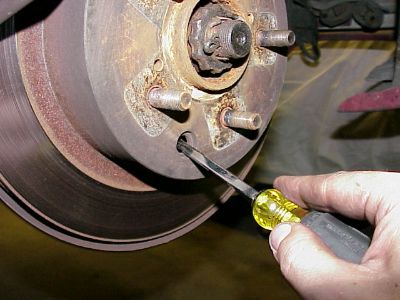 Remove rubber plug from the disc hat by hand. Ignore the slot that looks like the plug will take a screwdriver unless for some reason plug is stuck.