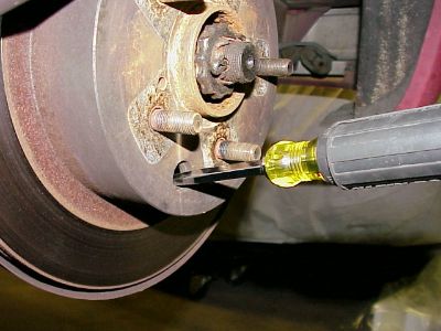 Both rear wheels need to be off the ground at some point. This can be done one rear wheel at a time. Sometimes it is easier to turn the hubs with both wheels in the air at the same time Start by jacking one rear wheel up. Then release the parking brake and put the transmission into neutral.
