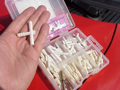 For a couple of bucks I could get two of the 1/4" X 1/4" X 1/4" "T" connectors in my hand, but for a few dollars more I bought the variety pack.