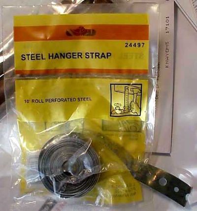 I cut a small piece of steel hanger strap. This stuff comes in handy for a variety of sturdy fab repairs You can tell from the label I bought it in the plumbing section. The strap can be cut, bent, and twisted for a variety of purposes, and attached with the holes that already come predrilled through it.