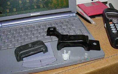 Hold the passenger side bracket (originally was the driver side bracket) in place, mark and cut notches as shown with your Dremel or file so the bracket will fit.