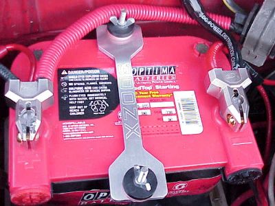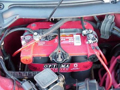 I first installed this Optima Red Top while in the parking lot of the auto parts store where I bought the battery.  Even though this "Advanced" store advertised "free battery installation," the sales guy took one look under the hood of my Z and said, "No way am I gonna touch that!"  I wasn't happy with my installation efforts either, but in the interest of leaving the parking lot under my own power, I settled for this.