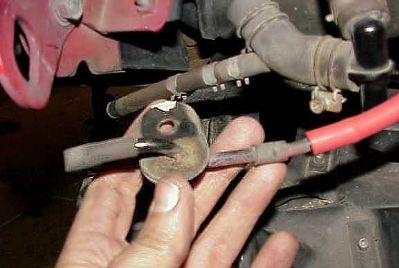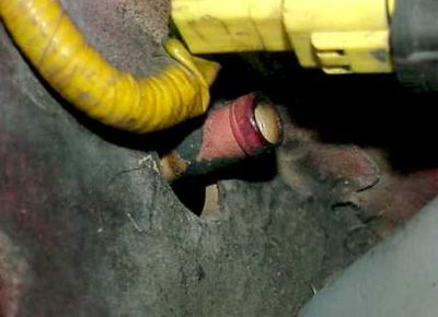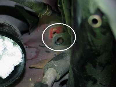 Remember, the bottom connection is not critical. Many peeps have E-mailed me that their car did not have this place to connect the line. Then just vent that end of the line into the frame rail or under the car. Rimes E-mailed me and said that he put a one-way valve from a windshield washer squirter at the end of this line with good results.