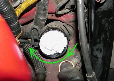 I didn’t feel like making a run to the auto parts store just for a vacuum cap, so I made a vacuum cap for the air intake tube by putting a screw in short piece of vacuum hose, as shown. From the overkill department, I used sealant around the screw threads and put a plastic cable tie around the hose after the pic was taken.