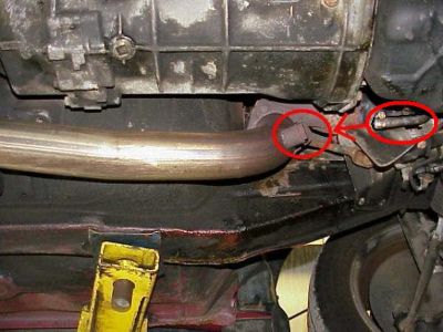 Once the air tube is disconnected from the exhaust and the AIV, it will lift up an out the front of the engine,. Remove the two bolts by the arrows in the above pic and do some creative wiggling.