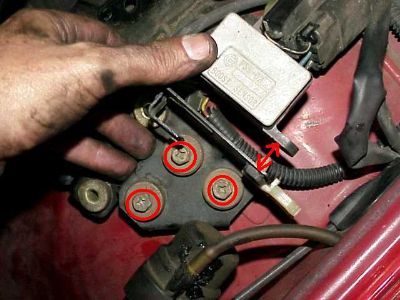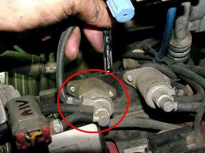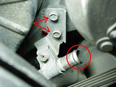 There were three bolts holding the AIV onto its mounting bracket. Remove the bolts and pull the AIV, solenoid and hoses out of the car, preferably as one unit. The boost sensor will be left behind on the same bracket to which the AIV was connected.