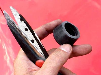 This is a one-inch diameter, rubber furniture leg cap, trimmed down a quarter inch or so in height. This capped the hole in the intake perfectly.
