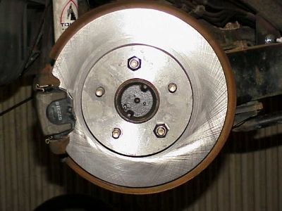 A little hard to tell from this pic, but I needed a new rotor to replace this one which is badly gouged. Rotor = disc.