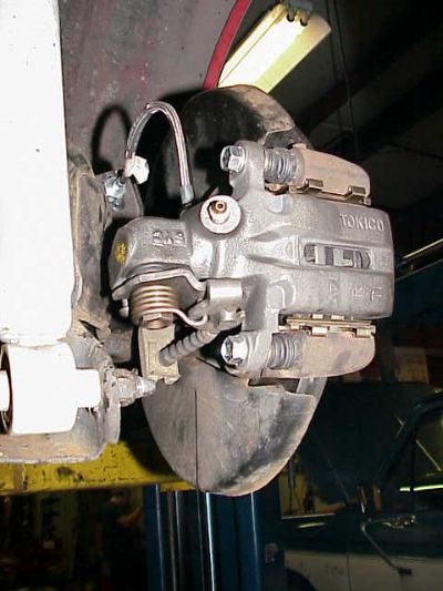 The front calipers are easy pretty straight foward to replace. Undo the brake lines and two bolts for each caliper. On earlier Z's the outside wheel bearings have to be removed in order to get the rotors off the car to turn them. Not on mine. Since I bought the calipers "fully loaded" it was a simple bolt-on procedure. I don't have any pics because it was in the middle of winter and I paid a kid in his heated garage to do the work.