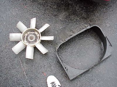 Fan attached to clutch, and radiator shroud.