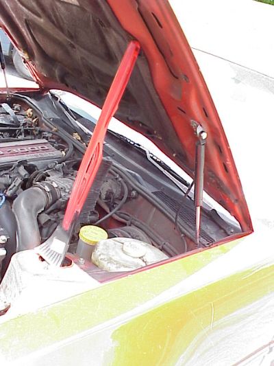 Snow scraper being used to prop hood open after struts would no longer do the job. I used Amazon.com to order my struts from Life Supports Depot.