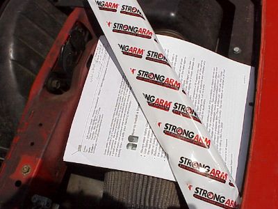 "Strong Arm" brand packaging and instructions that came with the struts. Included nut, bolt and washer for the upper mount only. I reused the old hardware.