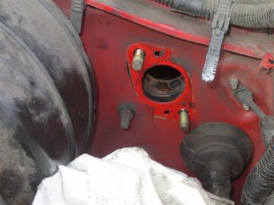 Studs on left side of firewall where MC used to be. The 17mm nut on lower stud required an extension and some care not to drop it.