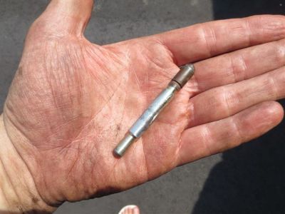 Hard to tell from these pics, but the cork perfectly filled the hole in the arm of the clutch pedal left by the crumbled stopper. The red circle is the tapered end of the cork that was pushed through the hole in the clutch pedal from the other side.